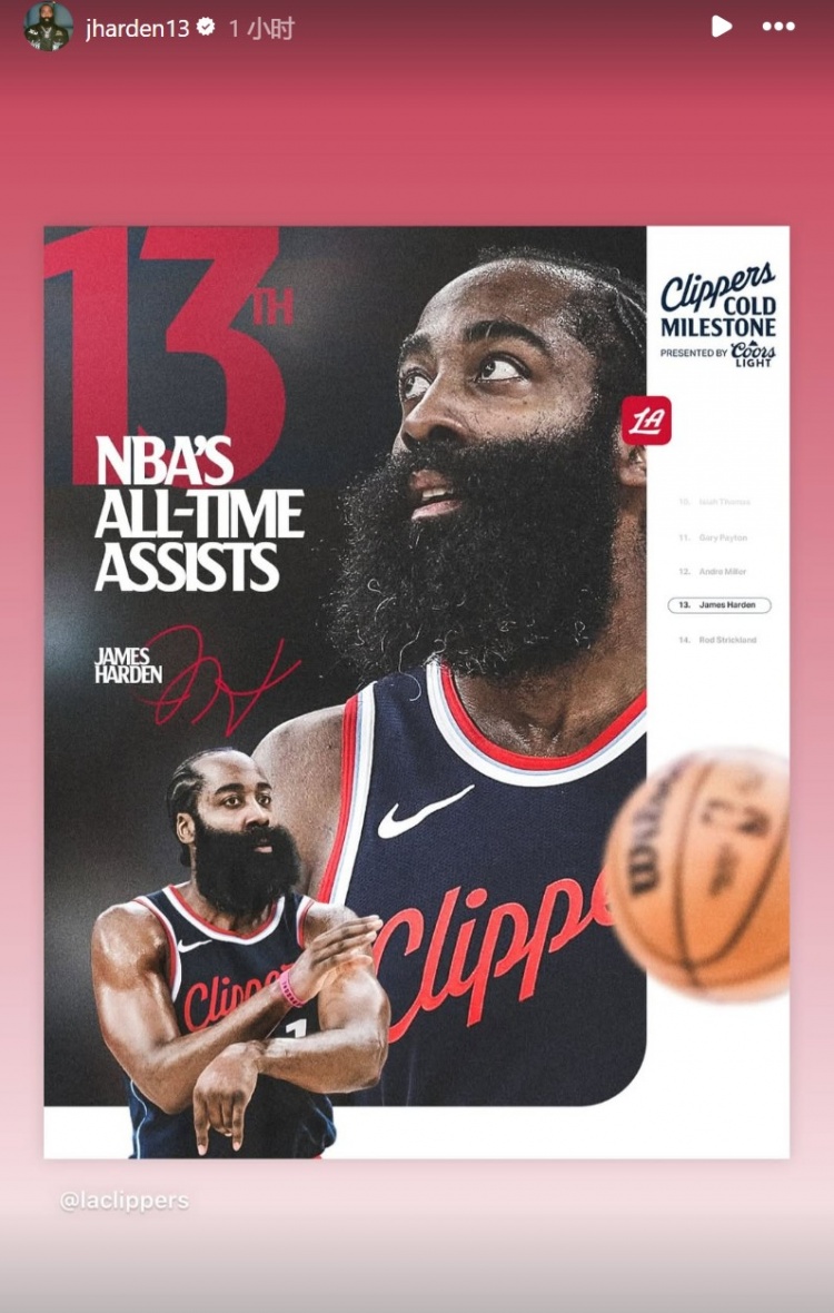 賽后,哈登也轉(zhuǎn)發(fā)了快船的官方海報(bào)。