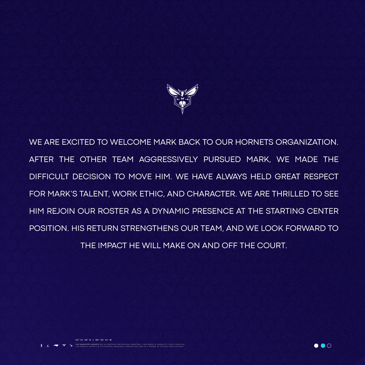 黃蜂官方寫到:“我們很高興的歡迎馬威回到我們的球隊(duì)。在另一支球隊(duì)積極追求馬威后,我們做出了艱難的決定,將他送走。我們一直非常看重馬威的才華、職業(yè)態(tài)度和品格。我們很高興看到他回歸繼續(xù)擔(dān)任首發(fā)中鋒,他的回歸增強(qiáng)了我們的球隊(duì),我們期待他在球場內(nèi)外的影響力?!?/p>