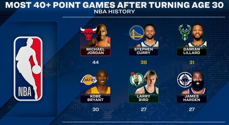 2月11日訊 今天NBA多場比賽進行,轉(zhuǎn)播方曬出一組數(shù)據(jù),30歲以上球員砍下40+場次數(shù)的排行榜如下:1、喬丹,44次2、庫里,38次3、利拉德,31次4、科比,30次5、伯德,27次5、哈登,27次 本文標(biāo)簽: NBA 籃球 公牛 勇士 庫里 雄鹿 利拉德 湖人 科比 凱爾特人 快船 哈登 喬丹