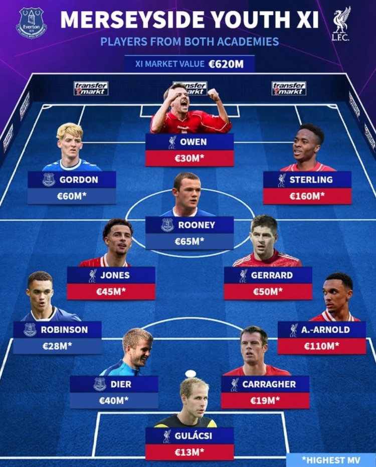德轉(zhuǎn)列利物浦德比青訓(xùn)最貴陣:總身價(jià)6.20億歐元
