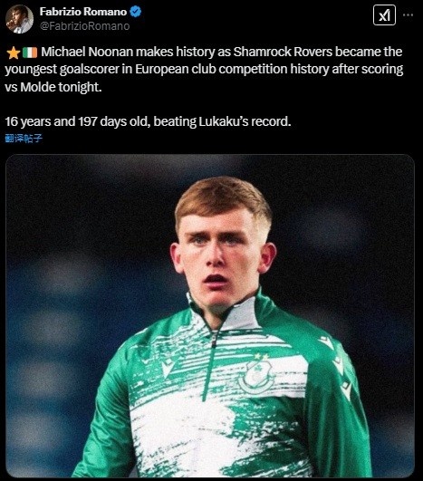 2月14日訊 在今天凌晨進(jìn)行的歐協(xié)聯(lián)比賽,16歲197天的愛爾蘭小將邁克爾-努南進(jìn)球,成為歐戰(zhàn)歷史上最年輕的進(jìn)球球員。