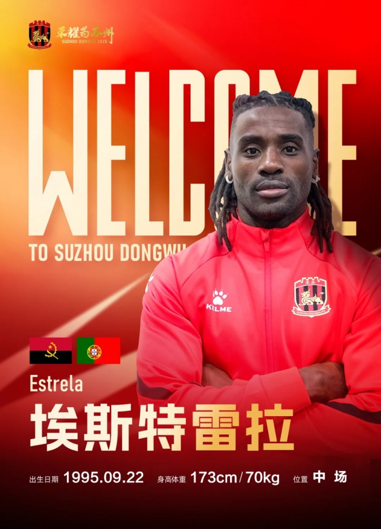 經(jīng)友好協(xié)商并達(dá)成一致,球員埃斯特雷拉正式加盟蘇州東吳足球俱樂部,為蘇州東吳出戰(zhàn)新賽季各項(xiàng)賽事。