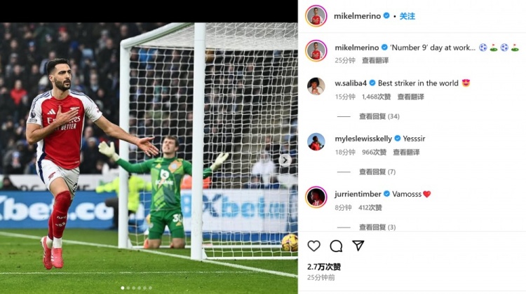 2月16日訊 阿森納在本輪英超客場2-0力克萊斯特城,梅里諾替補(bǔ)雙響建功。第81分鐘,阿森納前場進(jìn)攻,恩瓦內(nèi)里起球送到門前,梅里諾頭球攻門得手。第87分鐘,特羅薩德左路得球,擺脫后送出傳中,后點(diǎn)梅里諾跟進(jìn)推射得手。梅里諾首次客串中鋒便打進(jìn)2球,他也通過社媒曬出自己進(jìn)球后的慶祝照,并配文:“9號(hào)位上班日… ????????” 本文標(biāo)簽: 足球 英超 阿森納 萊斯特城