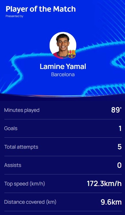 1月30日訊 巴薩在本輪歐冠2-2戰(zhàn)平亞特蘭大,亞馬爾在賽后被評為全場最佳球員。亞馬爾在本場比賽出戰(zhàn)89分鐘,5次射門打進(jìn)1球,跑動距離9.6公里。 本文標(biāo)簽: 足球 西甲 巴塞羅那 意甲 亞特蘭大 歐冠