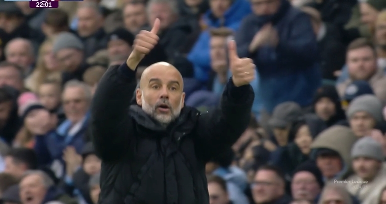 英超第25輪曼城4-0紐卡,比賽第22分鐘胡桑諾夫失誤后回追+解圍,瓜迪奧拉高舉雙手鼓掌點(diǎn)贊。