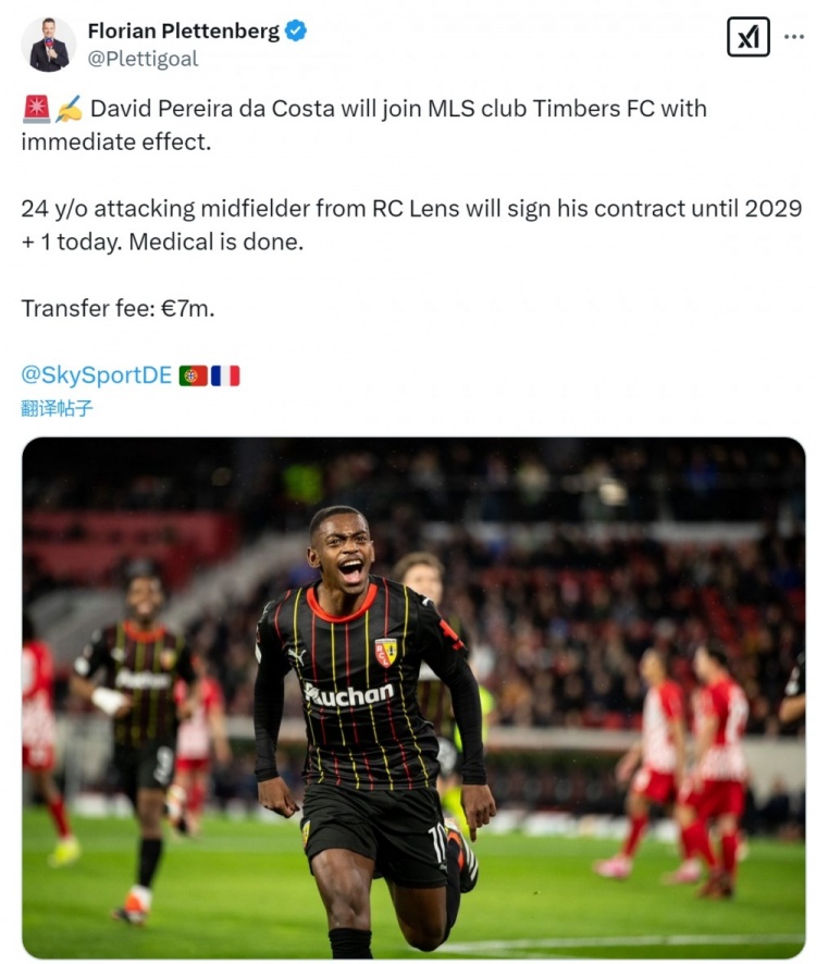 普萊滕伯格指出,大衛(wèi)-科斯塔將立即加盟波特蘭伐木工,轉(zhuǎn)會(huì)費(fèi)700萬歐元。大衛(wèi)-科斯塔已經(jīng)完成體檢,今天將簽署期限到2029年的合同,其中還包含1年選擇續(xù)約條款。