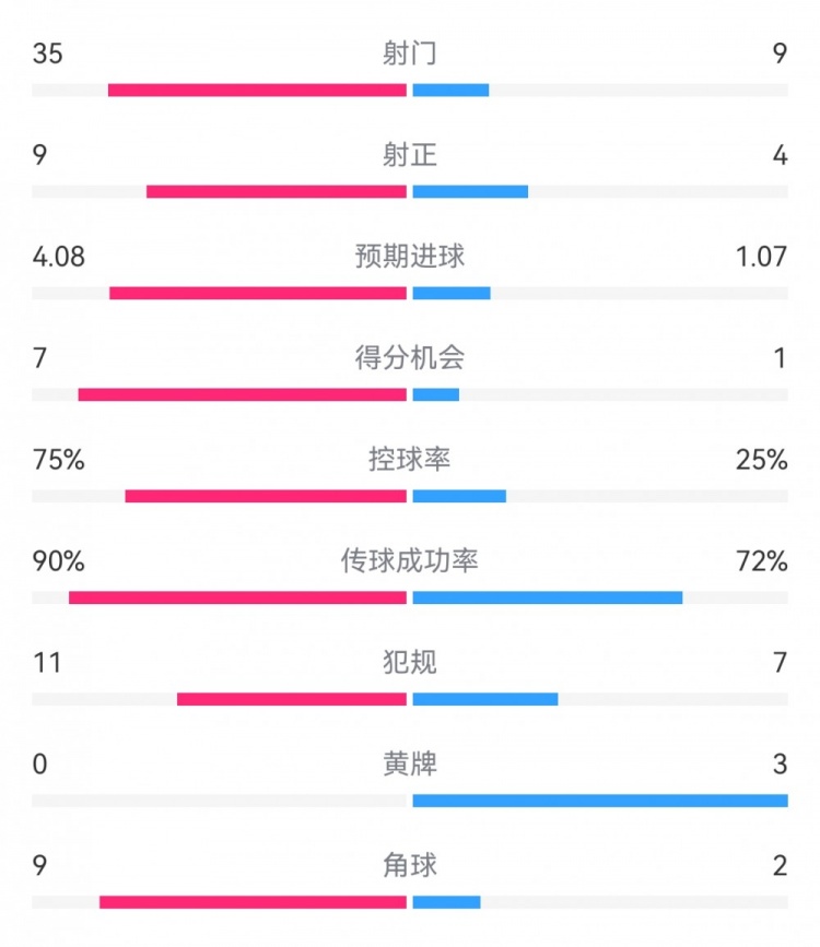 1月30日訊 歐冠末輪,拜仁主場(chǎng)3-1布拉迪斯拉發(fā)。雙方全場(chǎng)重點(diǎn)數(shù)據(jù)對(duì)比如下↓(主隊(duì)拜仁在前,客隊(duì)布拉迪斯拉發(fā)在后)