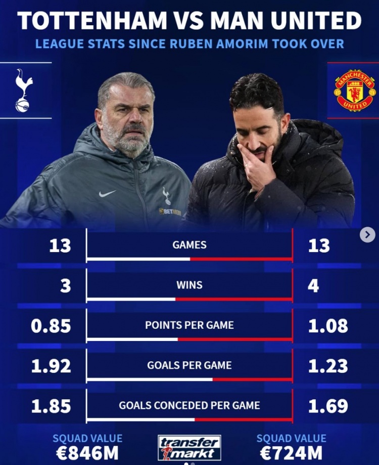 2月17日訊 本輪英超焦點戰(zhàn),兩支本賽季狀態(tài)同樣糟糕的BIG6球隊狹路相逢。數(shù)據(jù)統(tǒng)計顯示,自阿莫林接手曼聯(lián)以來,紅魔英超近13輪僅4勝,場均1.08分、打進(jìn)1.23球、丟1.69球;而澳波同期帶領(lǐng)熱刺13輪僅3勝,場均0.85分、打進(jìn)1.92球、丟1.85球。 本文標(biāo)簽: 足球 英超 曼聯(lián) 熱刺