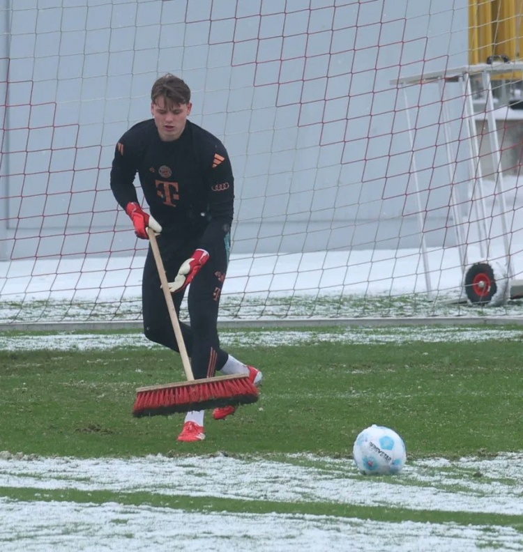 由于慕尼黑周日突降大雪,這位小將并沒(méi)有等待工作人員,而是自己拿起掃把和門(mén)將教練一起掃雪,隨后加練了一個(gè)小時(shí)。