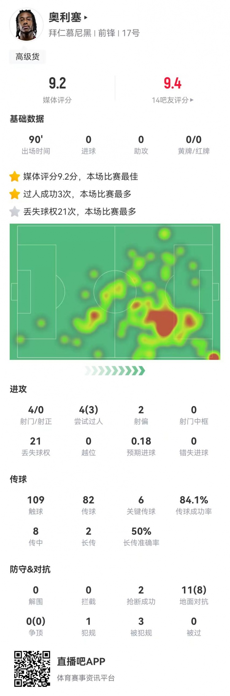 1月30日訊 拜仁在本輪歐冠3-1擊敗布拉迪斯拉發(fā),奧利塞本場數(shù)據(jù)如下:出場90分鐘預期助攻0.82109觸球82傳球、69成功,成功率84%6關(guān)鍵傳球8傳中、2成功2長傳、1成功2創(chuàng)造重大機會4射門、0射正4過人、3成功11對抗、8成功21丟失球權(quán)3造犯規(guī)2搶斷獲評9.2分全場最高 本文標簽: 歐冠 德甲 拜仁慕尼黑 足球