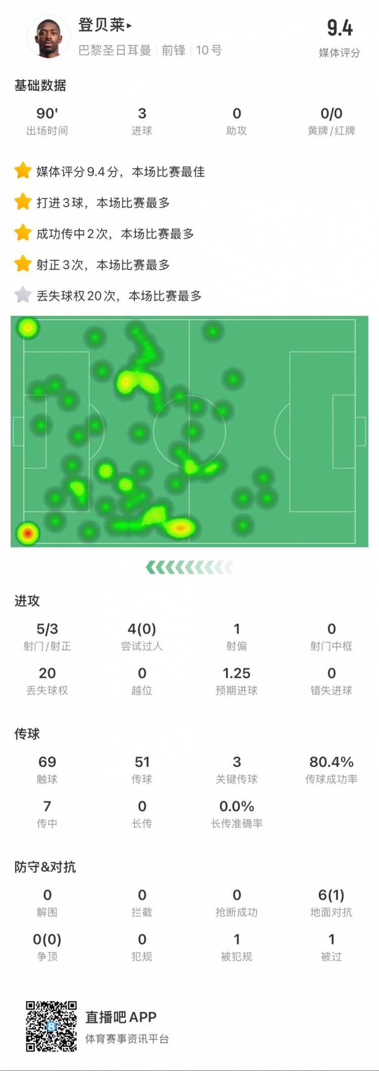 1月30日訊 歐冠最后1輪比賽,巴黎4-0斯圖加特,登貝萊上演帽子戲法。登貝萊全場數(shù)據(jù):打進(jìn)3球5次射門3次射正4次過人0次成功69次觸球51次傳球41次成功3次關(guān)鍵傳球7次傳中2次成功6次地面對(duì)抗贏得1次1次被犯規(guī) 本文標(biāo)簽: 足球 法甲 巴黎圣日耳曼 歐冠