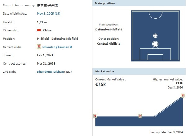 這支國青隊陣中,另外一名得到廣泛好評的球員是中場的依木蘭。來自于山東泰山青訓(xùn)的他,雖然只有19歲,不過球風(fēng)已經(jīng)非常成熟。