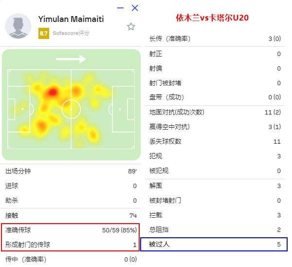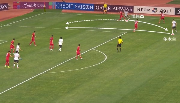 依木蘭最被球迷津津樂道的一幕,就是發(fā)生在跟卡塔爾U20的比賽里。當(dāng)時依木蘭用一個布斯克茨式轉(zhuǎn)身完成變向,隨后送出直塞球給到隊友陳澤仕,帶來了隨后的反擊機會。