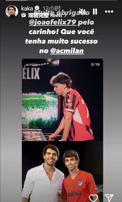 2月17日訊 不久前,米蘭名宿卡卡更新了社交媒體,感謝菲利克斯對他的贊美。在此前接受MTV的采訪時,菲利克斯表示:“卡卡一直是我的偶像,是我小時候的英雄。我在他身上的很多地方都看到了自己的樣子,無論是他在球場上的位置,還是踢球方式和腳下技術?!?/p>卡卡也對此進行了感謝,他寫道:“感謝若昂的贊美!祝愿你在米蘭能夠取得巨大的成功?!?/p> 本文標簽: 足球 意甲 AC米蘭