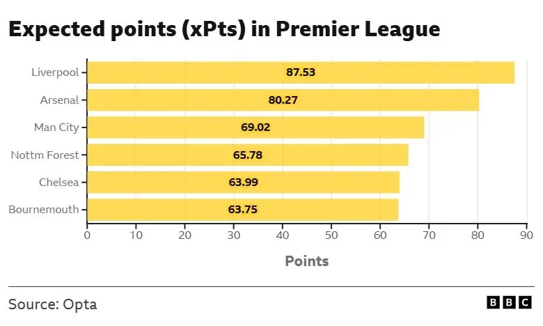 大數(shù)據(jù)預(yù)測(cè)英超本賽季最終積分:1、利物浦:87.532、阿森納:80.273、曼城:69.024、森林:65.785、切爾西:63.996、伯恩茅斯:63.75 本文標(biāo)簽: 足球 英超 切爾西 阿森納 曼城 利物浦 諾丁漢森林 伯恩茅斯