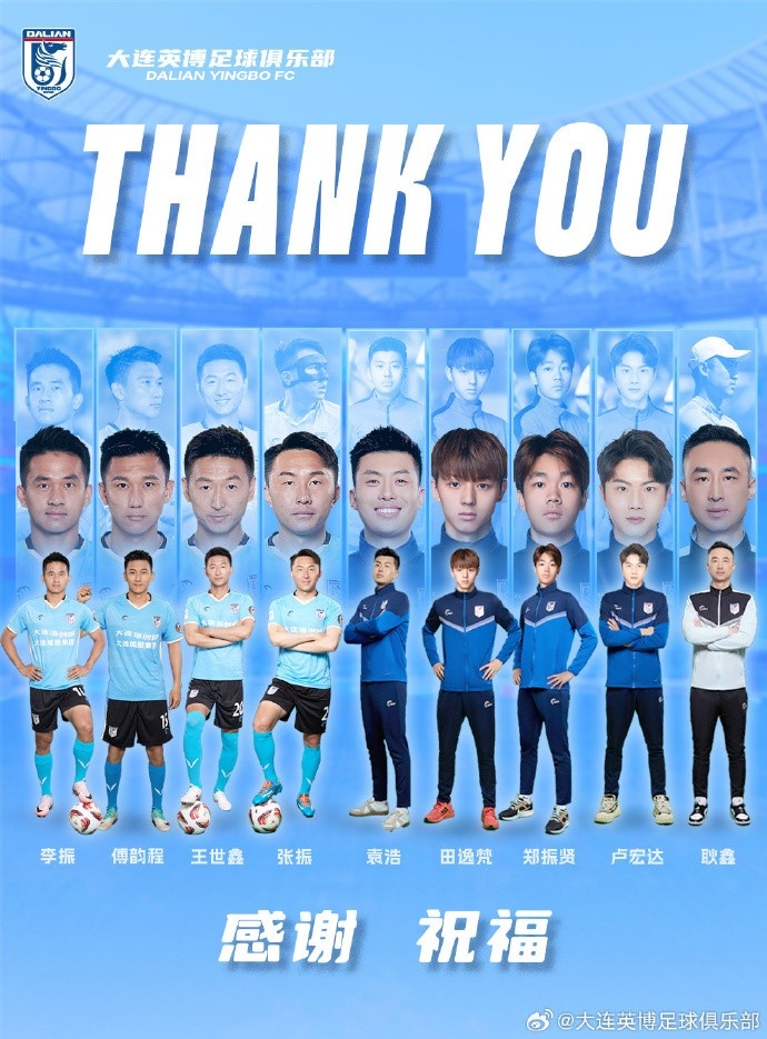大連英博足球俱樂部衷心感謝所有球員的辛勤付出和不懈努力!祝愿大家未來一切順利!