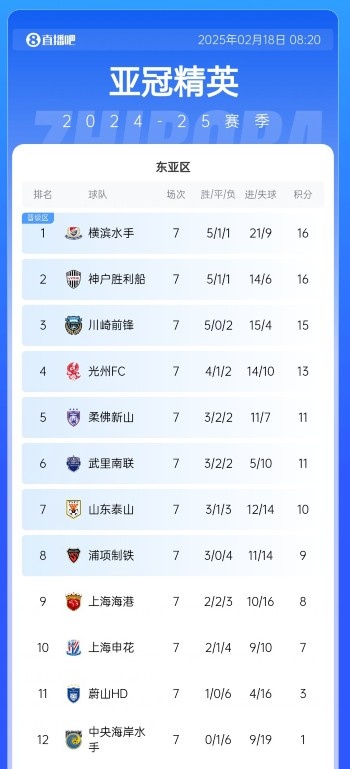目前在積分榜上,上海申花隊2勝1平4負暫列亞冠精英聯(lián)賽東亞區(qū)第10位。