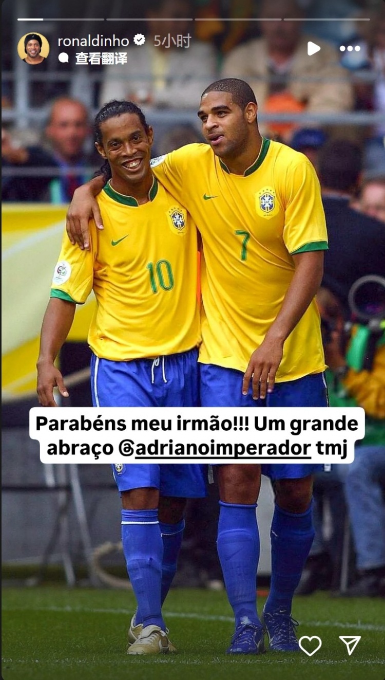 2月18日訊 小羅更新社媒動態(tài),祝前巴西隊友阿德里亞諾生日快樂。阿德里亞諾迎來43歲生日,小羅社媒曬出與他昔日在國家隊的合照,并配文:“祝你生日快樂我的兄弟!給你大大的擁抱!” 本文標(biāo)簽: 足球 巴西 意甲 國際米蘭