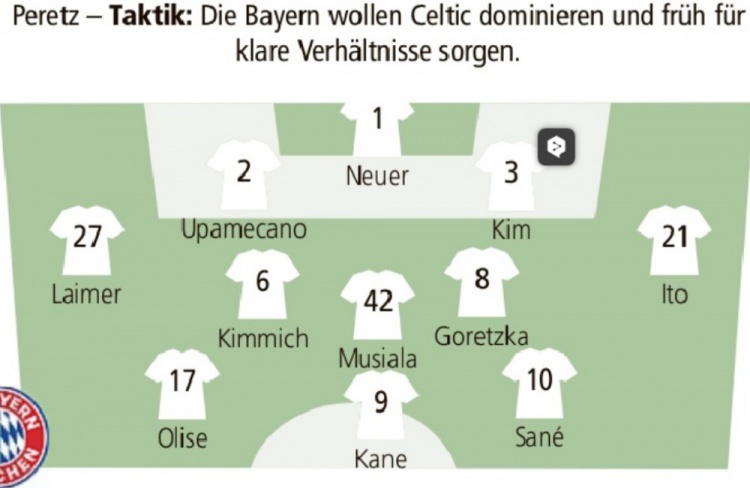 2月18日訊 北京時(shí)間周三凌晨的歐冠淘汰賽附加賽次回合,拜仁將在主場(chǎng)迎戰(zhàn)凱爾特人,《慕尼黑日?qǐng)?bào)》對(duì)主隊(duì)的首發(fā)陣容進(jìn)行了預(yù)測(cè),凱恩、薩內(nèi)、奧利塞組成進(jìn)攻三叉戟。