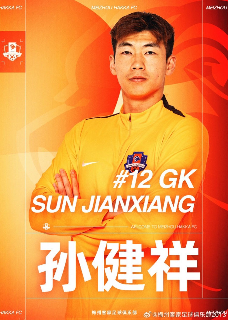 與球員本人友好協(xié)商一致,孫健祥已完成簽約手續(xù),成功加盟梅州客家足球俱樂(lè)部,將隨隊(duì)征戰(zhàn)2025年中超聯(lián)賽及各項(xiàng)賽事。