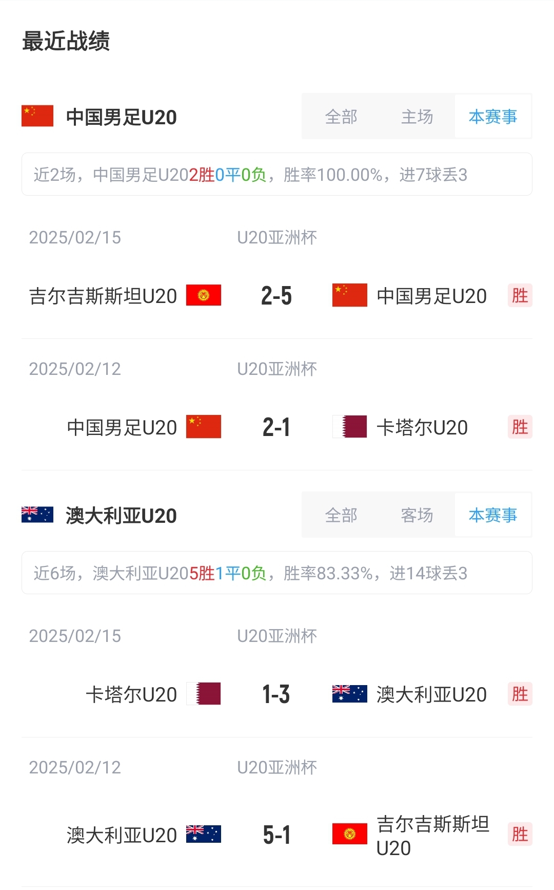 目前中國(guó)男足U20和澳大利亞U20均取得兩連勝,提前晉級(jí)八強(qiáng),淘汰賽的對(duì)手將是B組的前兩名(A1vsB2,A2vsB1)。