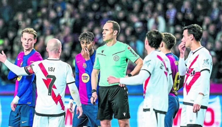 巴薩在本場比賽第26分鐘獲得點(diǎn)球,但在判罰點(diǎn)球之前主裁判梅萊羅-洛佩斯當(dāng)時沒有對西斯明顯摟抱伊尼戈-馬丁內(nèi)斯的動作做出反應(yīng),而VAR裁判迪亞茲德梅拉提示了主裁判,他認(rèn)為這個動作為犯規(guī)動作,而這個判罰也遭到了客隊巴列卡諾球員的齊聲抗議。