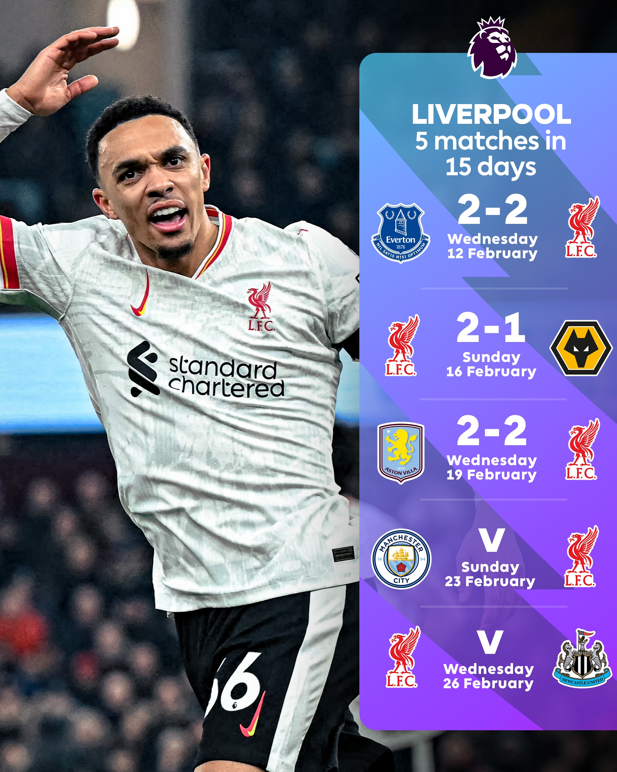 關(guān)關(guān)難過!英超曬利物浦賽程:15天5賽&已1勝2平 下周戰(zhàn)曼城紐卡