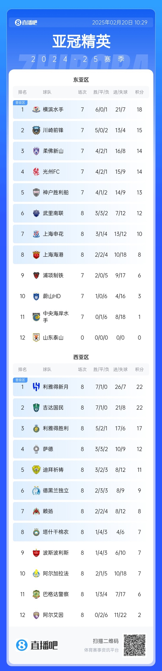 根據(jù)亞足聯(lián)官方積分榜顯示,浦項(xiàng)制鐵原本4-2擊敗泰山的比賽顯示“取消”,球隊(duì)積6分排名第9,落后上海海港,無(wú)緣淘汰賽。