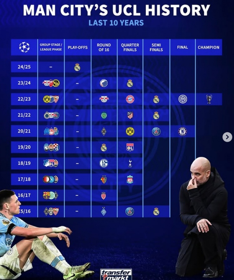2月20日訊 曼城在本輪歐冠附加賽被皇馬雙殺淘汰出局,十年來(lái)首次無(wú)緣歐冠十六強(qiáng)戰(zhàn)?!掇D(zhuǎn)會(huì)市場(chǎng)》也列出了曼城近10年歐冠戰(zhàn)績(jī)。