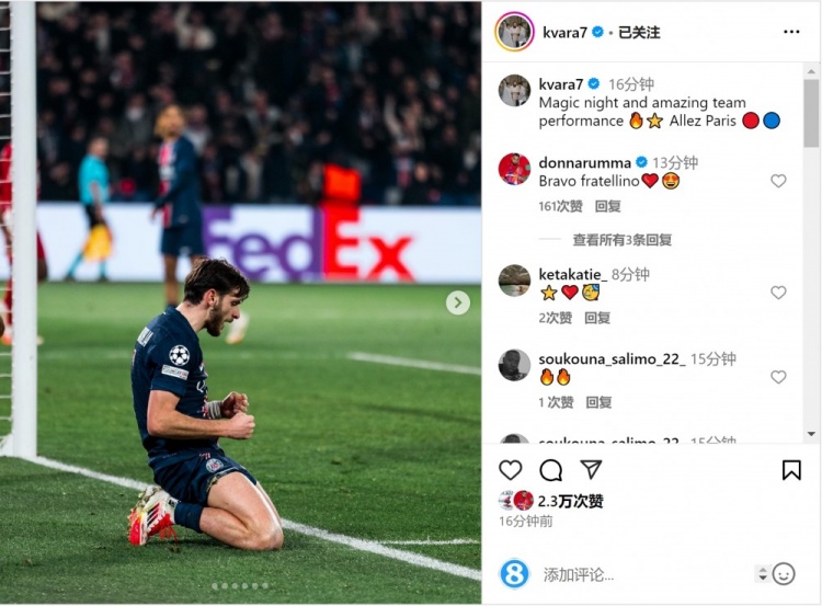 2月20日訊 歐冠淘汰賽附加賽次回合比賽,克瓦拉茨赫利亞傳射建功,攻入加盟巴黎以來(lái)首粒歐冠進(jìn)球,幫助巴黎主場(chǎng)7-0擊敗布雷斯特,兩回合總比分10-0晉級(jí)。克瓦拉茨赫利亞在社交媒體上曬出慶祝的照片,配文:“神奇的夜晚,出色的團(tuán)隊(duì)表現(xiàn)。加油巴黎!” 本文標(biāo)簽: 足球 法甲 巴黎圣日耳曼 歐冠