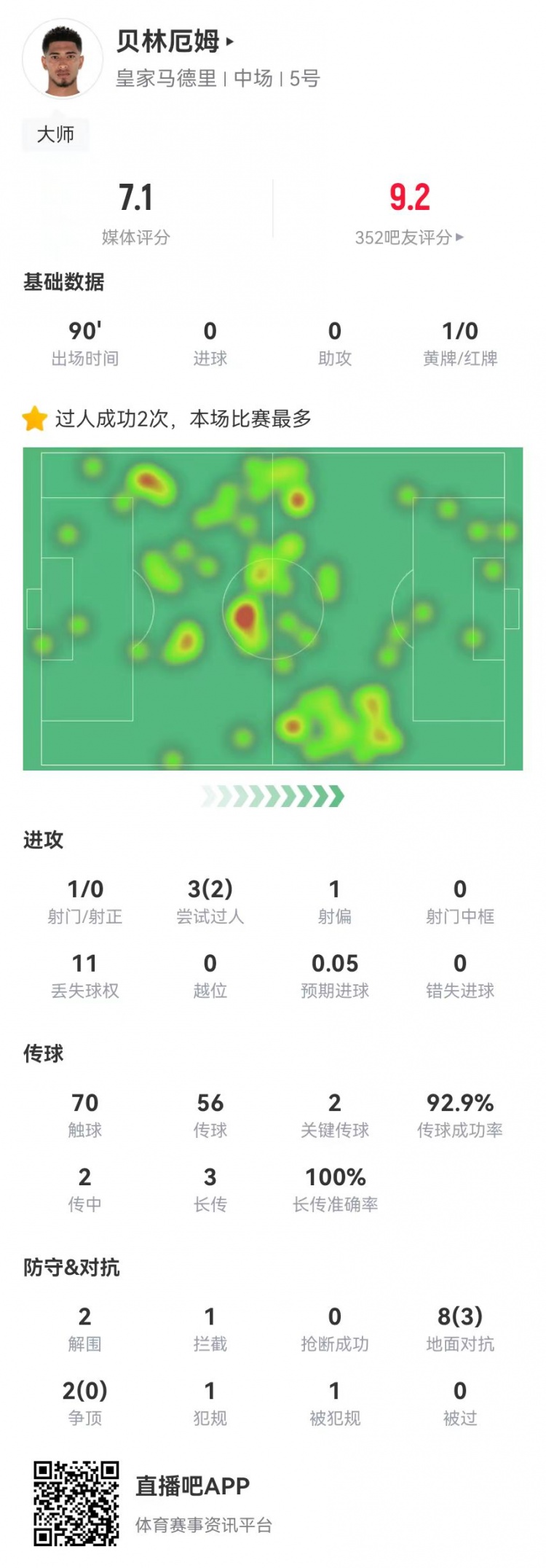 2月20日訊 皇馬在本輪歐冠次回合3-1擊敗曼城,貝林厄姆本場數(shù)據(jù)如下:首發(fā)踢滿全場預期助攻0.2170觸球56傳球、52成功,成功率93%2關(guān)鍵傳球2傳中、0成功3長傳、3成功1射門、0射正3過人、2成功10對抗、3成功11丟失球權(quán)1犯規(guī)1造犯規(guī)2解圍1攔截獲評7.1分 本文標簽: 足球 西甲 皇家馬德里 英超 曼城 歐冠