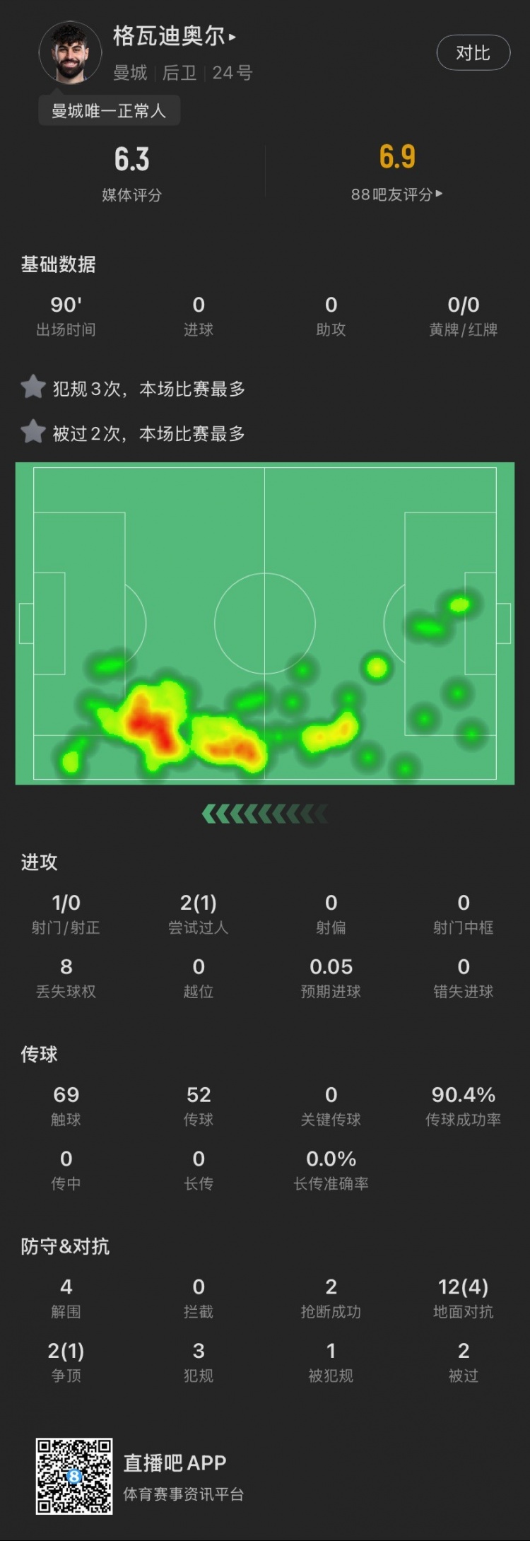 格瓦迪奧爾本場主要數(shù)據(jù)↓