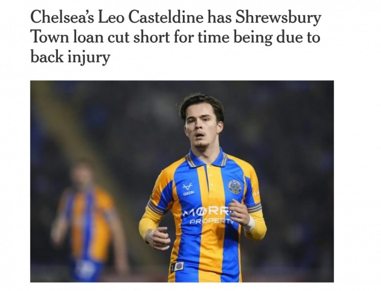 切爾西和什魯斯伯里對(duì)卡斯?fàn)柖∽饨杵陂g取得的進(jìn)步感到滿意,因此,藍(lán)軍并沒有在冬窗提前召回球員或?qū)⑺饨璧狡渌蜿?duì)鍛煉。
