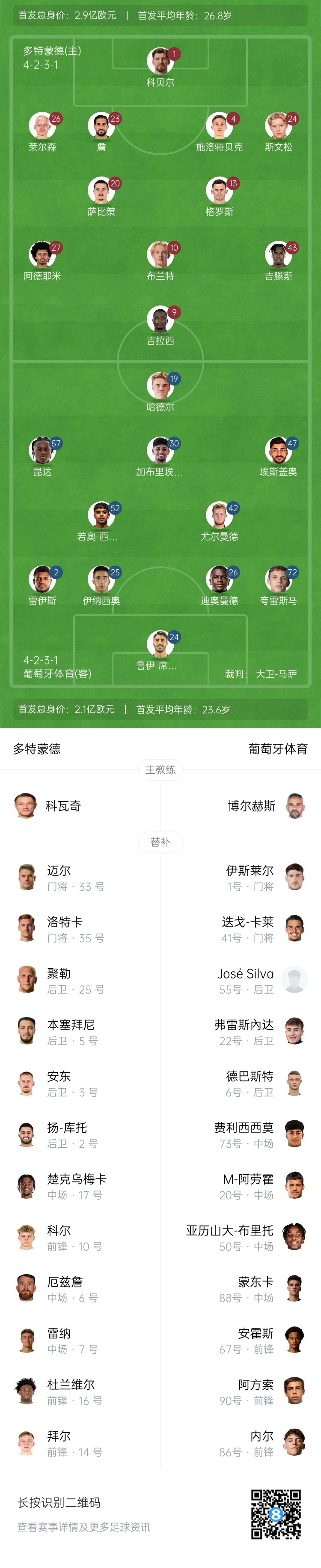 2月20日訊 歐冠淘汰賽附加賽次回合,多特對(duì)陣葡萄牙體育,賽前首發(fā)公布。