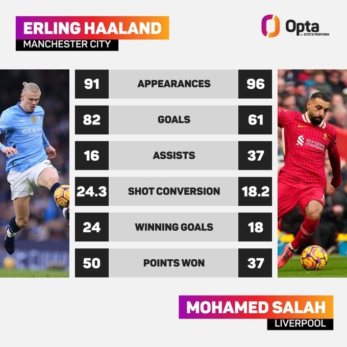 2月21日訊 OPTA統(tǒng)計了薩拉赫和哈蘭德過去三個賽季的進球數據,兩人都在英超參與了98個進球,分別為曼城和利物浦贏得50分和37分。過去3個賽季哈蘭德vs薩拉赫數據:出場數:91-96進球數:82-61助攻數:16-37射門轉化率:24.3-18.2制勝球:24-18為球隊贏得積分:50-37 本文標簽: 足球 利物浦 曼城 英超 哈蘭德 薩拉赫