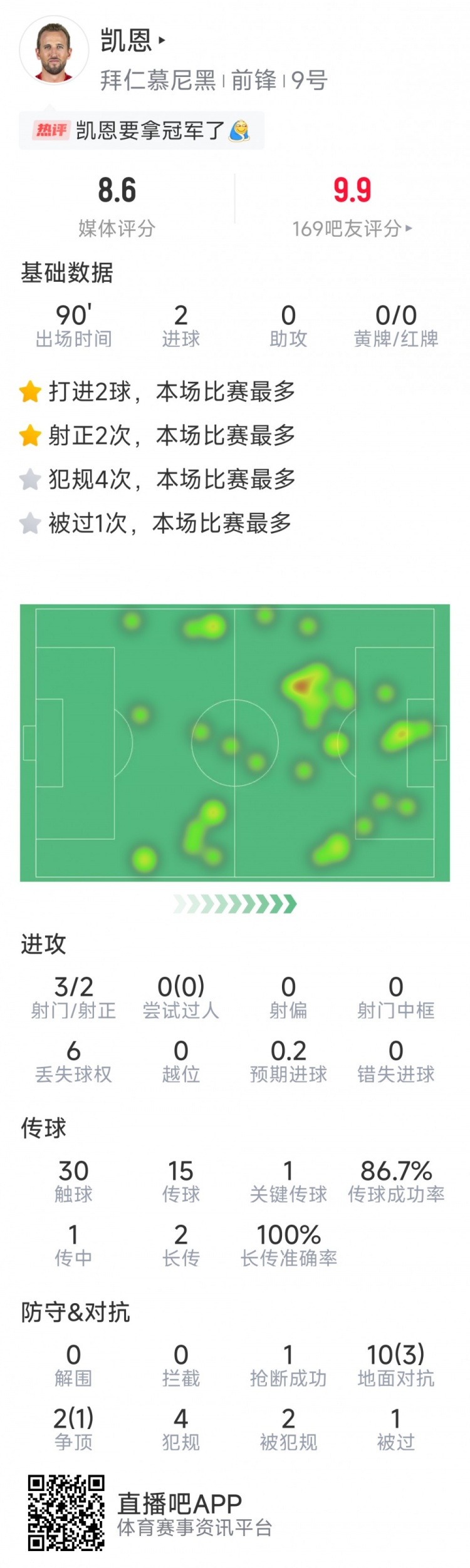 3月6日訊 在本輪歐冠拜仁3-0擊敗勒沃庫(kù)森的比賽中,凱恩梅開二度。以下為他在本場(chǎng)數(shù)據(jù):比賽時(shí)間90分鐘2粒進(jìn)球3次射門2次射正30次觸球1次關(guān)鍵傳球傳球成功率86.7%1次搶斷12次對(duì)抗4次成功評(píng)分8.6分 本文標(biāo)簽: 足球 德甲 拜仁慕尼黑