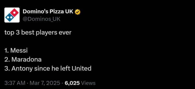 3月7日訊 歐聯(lián)杯1/8決賽首回合,貝蒂斯2-2戰(zhàn)平吉馬良斯。賽后,知名披薩連鎖品牌達(dá)美樂英國區(qū)官推盛贊安東尼。本場比賽,安東尼“蹭”到一次助攻,加盟貝蒂斯后8場直接參與6球。達(dá)美樂官推寫道:“有史以來最好的三名球員分別是:1、梅西,2、馬拉多納,3、離開曼聯(lián)后的安東尼?!?/p> 本文標(biāo)簽: 足球 梅西 英超 曼聯(lián) 西甲 皇家貝蒂斯