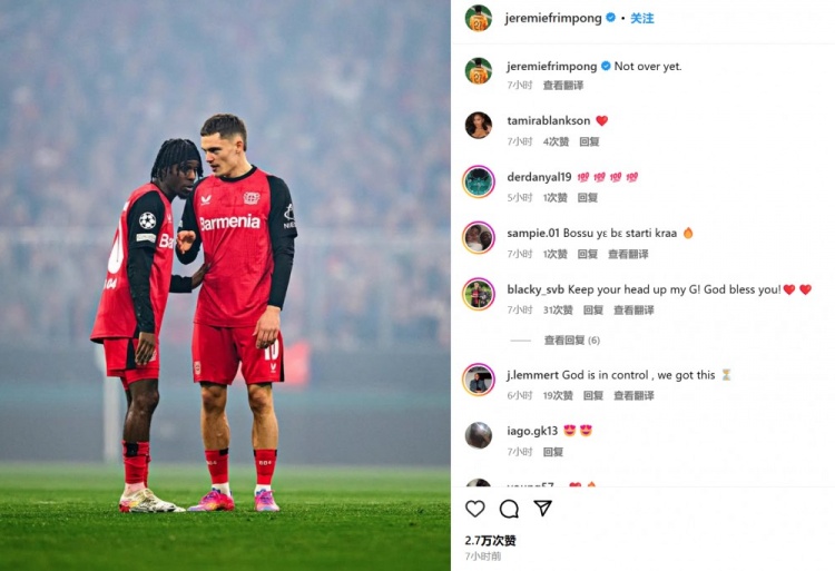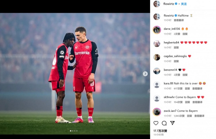 3月7日訊 勒沃庫(kù)森在昨日歐冠客場(chǎng)0-3完敗拜仁,維爾茨和弗林蓬在下半場(chǎng)被換下。兩人還被攝影機(jī)拍到在替補(bǔ)席交談的畫(huà)面,情緒都相當(dāng)激動(dòng)。而兩人也都在賽后通過(guò)社媒曬出比賽照,并各自配文:“還剩半場(chǎng)?”、“尚未結(jié)束”。 本文標(biāo)簽: 足球 德甲 拜仁慕尼黑 勒沃庫(kù)森 歐冠