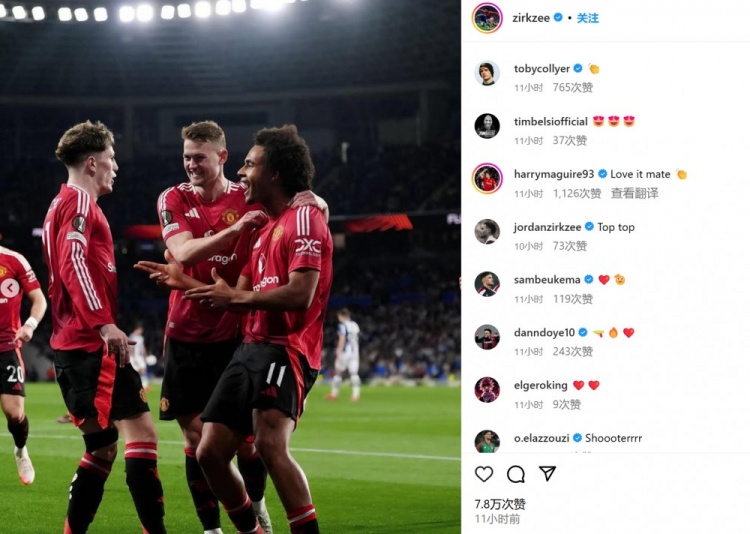 兩人也都在賽后通過社媒曬出比賽照紀(jì)念,但沒有附加文字內(nèi)容。而隊(duì)長(zhǎng)馬奎爾則現(xiàn)身齊爾克澤的評(píng)論區(qū)并夸獎(jiǎng):“愛了,兄弟!”