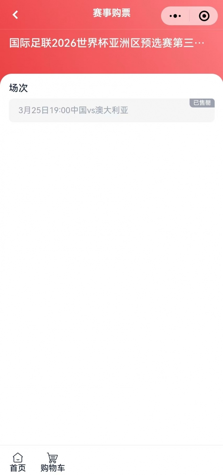 3月7日訊 國足將于3月25日于世預賽18強戰(zhàn)主場迎戰(zhàn)澳大利亞,本場球票在今日17點開售,多個平臺迅速售罄。開票不過15分鐘,購票平臺顯示各檔位門票均已售罄(除了偶爾出現(xiàn)少量回流票)。比賽將于3月25日19:00在杭州奧體中心體育場舉行。不知道吧友們成功搶到票了嗎? 本文標簽: 足球 中超 中國足球 國家隊 中國男足 澳大利亞
