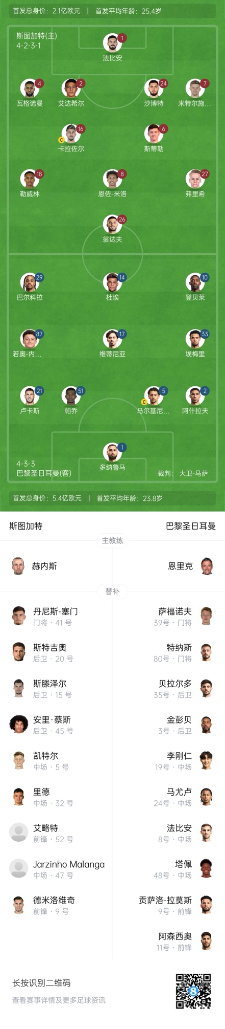 1月30日訊 歐冠聯(lián)賽階段第8輪,巴黎圣日耳曼將赴客場vs斯圖加特,賽前首發(fā)名單公布。