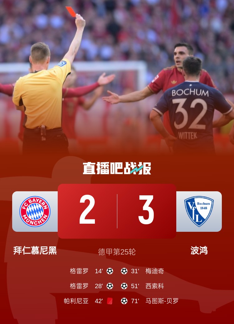 3月9日訊 北京時(shí)間8日晚,德甲第25輪,拜仁主場(chǎng)2-3不敵波鴻。據(jù)DW Sports數(shù)據(jù)統(tǒng)計(jì),這是波鴻首次在安聯(lián)球場(chǎng)擊敗拜仁。波鴻上次在客場(chǎng)戰(zhàn)勝拜仁要追溯到1991年。 本文標(biāo)簽: 足球 德甲 拜仁慕尼黑 波鴻