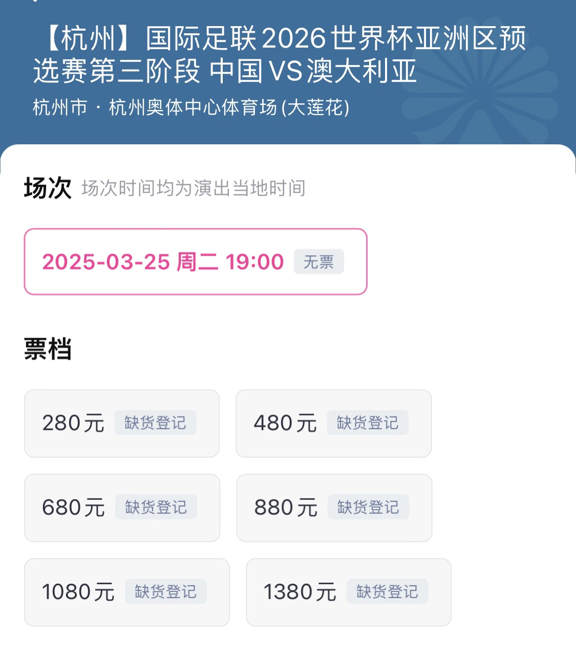 3月25日18強(qiáng)賽國(guó)足vs澳大利亞門票早已售罄,官方票務(wù)信息顯示,3月11日0:00起停止退票。這個(gè)時(shí)間點(diǎn)將成為最后的“撿漏”(回流票)的機(jī)會(huì)。 本文標(biāo)簽: 足球 中超 中國(guó)足球 中國(guó)男足