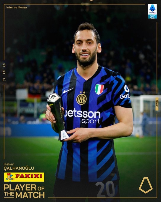 3月9日訊 國(guó)米在本輪意甲3-2逆轉(zhuǎn)蒙扎,恰爾汗奧盧在賽后被意甲官方評(píng)為全場(chǎng)最佳球員。