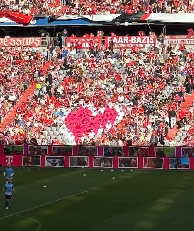 3月9日訊 本輪德甲,拜仁在主場(chǎng)2-3不敵波鴻?!秷D片報(bào)》報(bào)道,拜仁安聯(lián)球場(chǎng)看臺(tái)上標(biāo)志性的德國(guó)電信“T”字形圖案在本場(chǎng)比賽被心形圖案取代。
