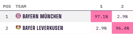 拜仁:97.1%;勒沃庫(kù)森:2.9%