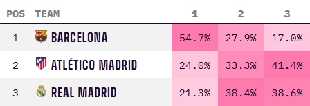 03月09日訊 根據(jù)數(shù)據(jù)機(jī)構(gòu)Opta的超級(jí)計(jì)算機(jī)演算顯示,目前歐洲五大聯(lián)賽爭(zhēng)冠形勢(shì)中,西甲最具懸念。