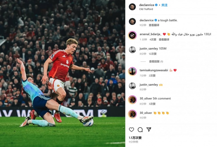 賴(lài)斯也通過(guò)社媒曬出自己倒地放鏟破壞霍伊倫單刀球的瞬間照,并配文:“一場(chǎng)艱難的戰(zhàn)斗?!?/p>