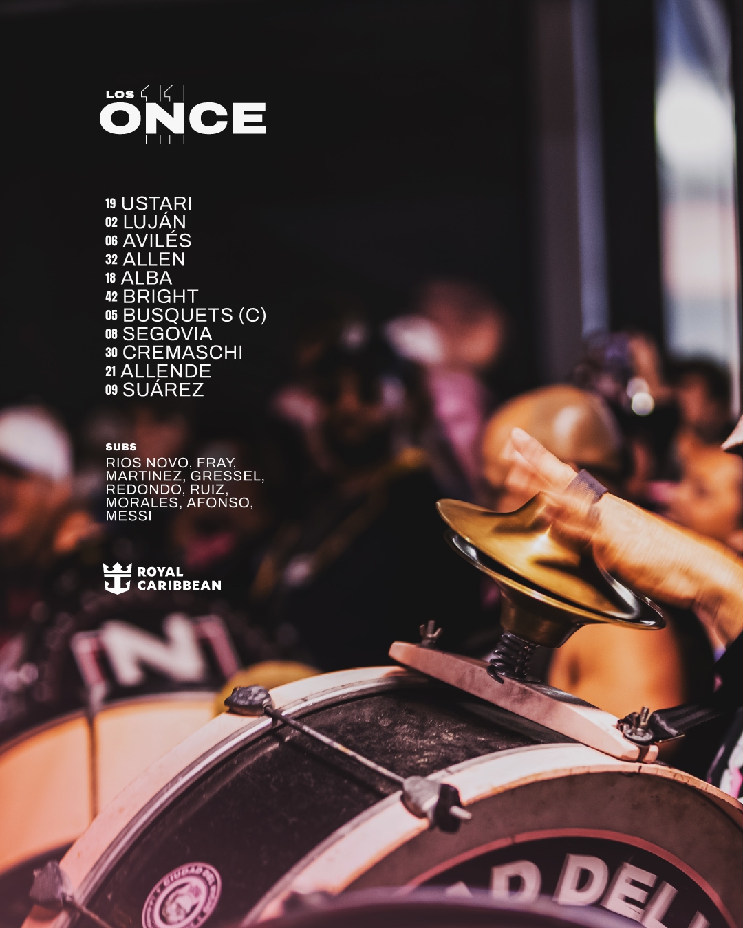 邁阿密國際首發(fā):19-烏斯塔里、2-盧揚、6-阿維萊斯、32-阿倫、18-阿爾巴、42-楊尼克-布萊特、5-布斯克茨、8-特拉斯科、30-克雷馬斯基、21-阿連德、9-蘇亞雷斯