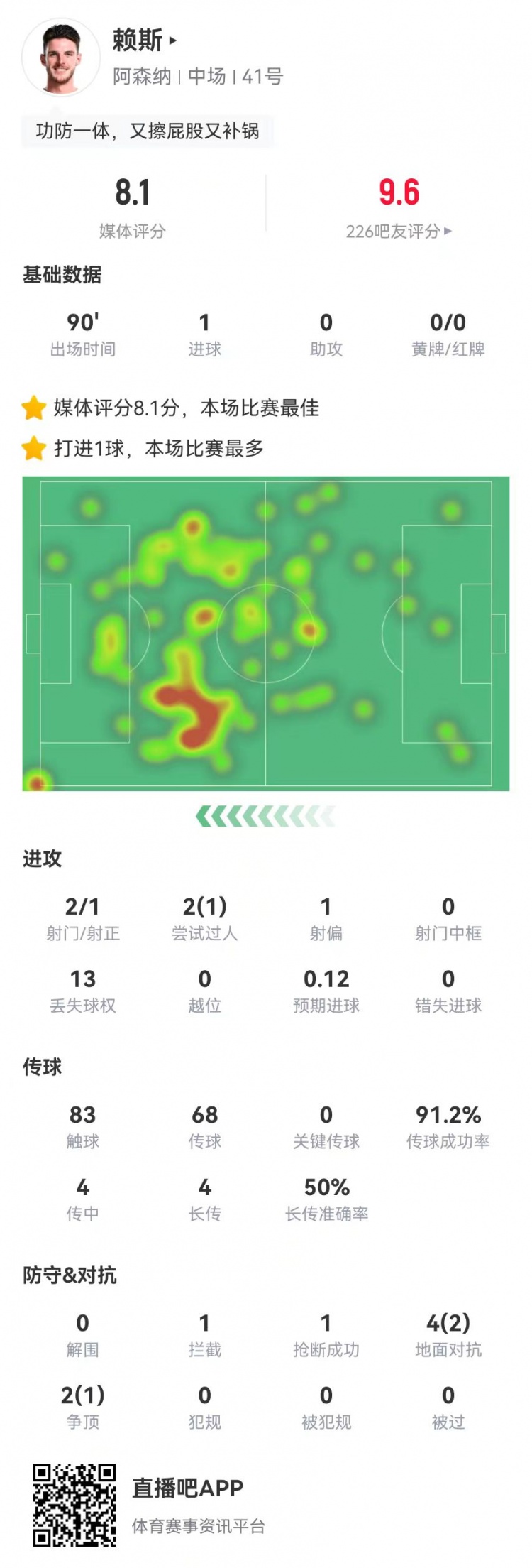 3月10日訊 阿森納在本輪英超客場1-1戰(zhàn)平曼聯(lián),賴斯本場數(shù)據(jù)如下:首發(fā)踢滿全場1球預(yù)期進(jìn)球0.12預(yù)期助攻0.3083觸球68傳球、62成功,成功率91%4傳中、0成功4長傳、2成功2射門、1射正2過人、1成功6對抗、3成功13丟失球權(quán)1攔截1搶斷1救險(xiǎn)獲評8.1分全場最高 本文標(biāo)簽: 足球 英超 曼聯(lián) 阿森納